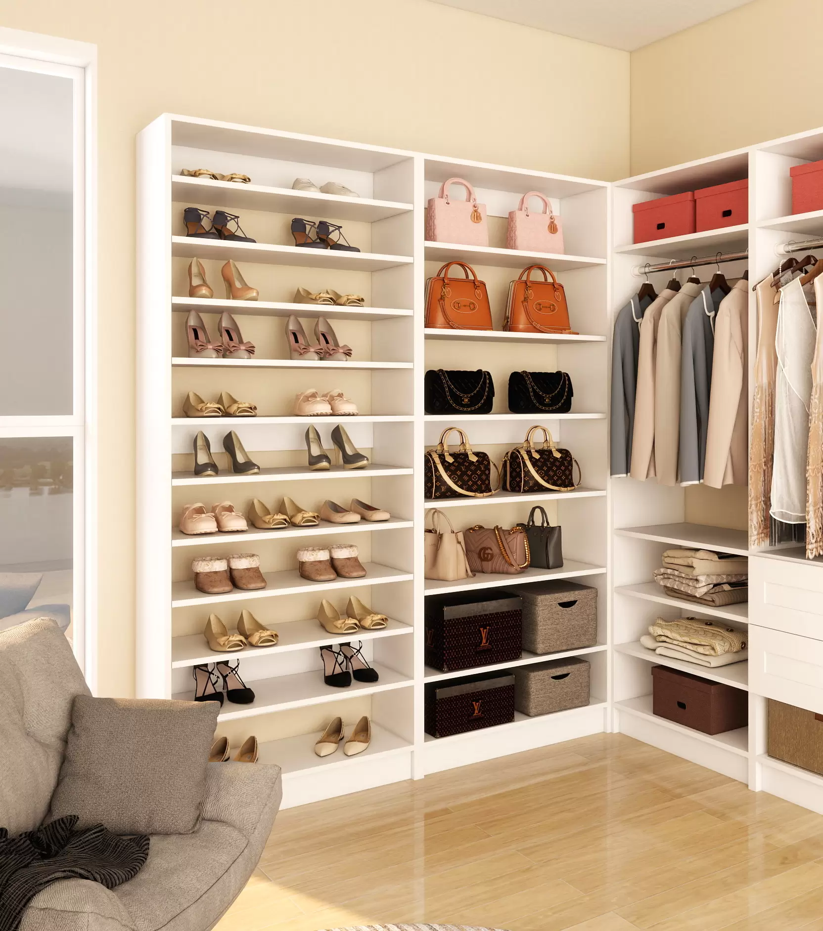 Instead of treating a closet as a single, fixed structure, we break storage down into functional modules-hanging sections, drawer units, shoe storage, and shelving-each engineered as an independent, compatible component.